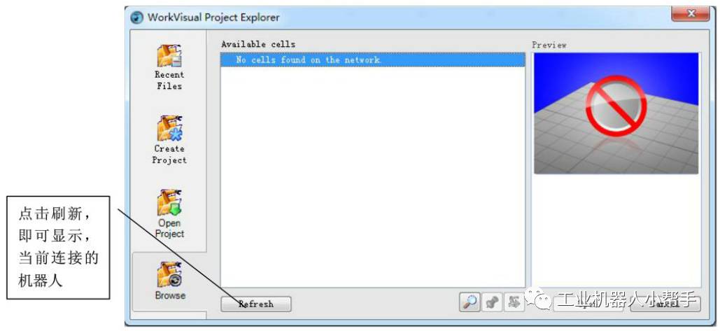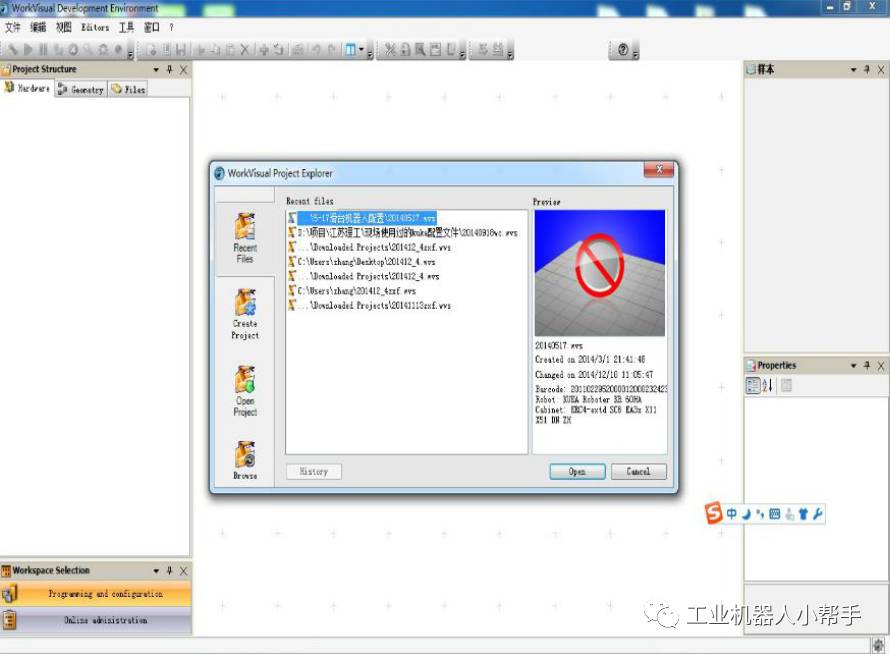 將電腦改成與機器人同一IP段,網(wǎng)線機器人與電腦連接,打開Workvisual軟件(以下為WV)。